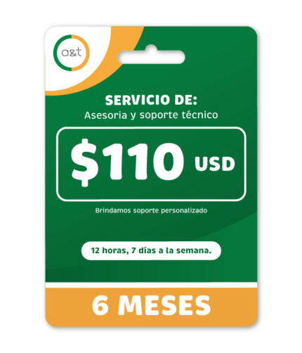 Brindamos soporte personalizado con asesores bilingües, 12 horas, 7 días a la semana. Válido por 1 año.